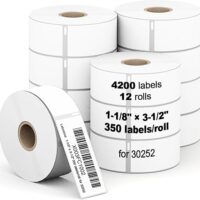 (4200 Labels/12 Rolls) Labelebal 12 Rolls Compatible with DYMO 30252,1-1/8" x 3-1/2"(28mm x 89mm) Direct Thermal Labels,Shipping Replacement Labels Compatible for DYMO LabelWriter Printer White labels. Do not substitute.