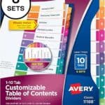 Avery 10 Tab Dividers for 3 Ring Binders, Customizable Table of Contents, Multicolor Tabs, 6 Sets (11188)