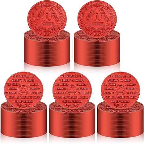 60 Pcs Recovery 1 Month AA Chips and Medallions Bulk Sobriety Chips AA Tokens Alcoholics Anonymous Medallion Gifts Red Aluminum Commemorative Coins
