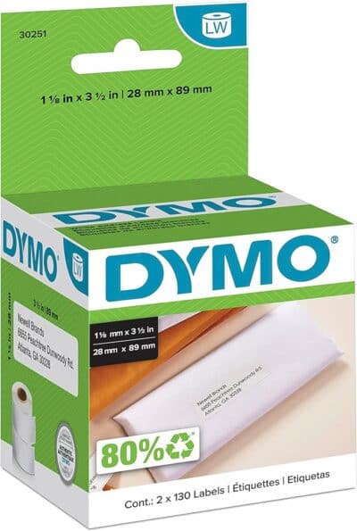 DYMO Authentic LW Mailing Address Labels | DYMO Labels for LabelWriter Label Printers (1-1/8″ x 3-1/2″), 2 Rolls of 130 (260 Total)
