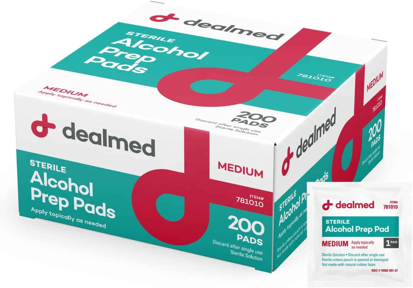 Dealmed Alcohol Prep Pads – 200 Count Medium Size Alcohol Pads, Latex-Free Alcohol Wipes, Gamma Sterilized Wound Care Products for a First Aid Kit and Medical Facilities