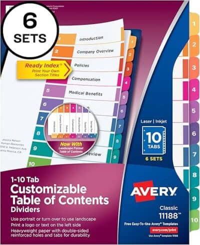 http://amazon.com/Avery-Dividers-Customizable-Multicolor-11188/dp/B00006IBW5/ref=sr_1_6?crid=34C3673VL40RB&dib=eyJ2IjoiMSJ9.OrKcTtG137KUL0R2OjYRjLYuyFzKsmTq_pvnFXxzMU7Avzsd6XTKJ40N4dczO9RuFKwpVzTnOewUn7X3ErfbzVFizZwB6q8f6JAjskJ9_H_2TkTy-syqEEOLGTnYDXCqQBuvRFpZMskSnU6PQ2jdV-6DQRJ-E_kixbLySlrhfPvz6UmuaQFQVrS0V1QnAwfGf_WY8Sft6uZjss9doKUQyHKar1u_2a5tvcxVGcRXIWeqrPOfYKH2FvrlqJeMA3HLVQgxWwy6f77MWinodhr8Y0GqGEaQb4-OKAyDIaiFnic.Q5lUxrj2tkJ-RYlUJpFIUKwKFQ5rVh5rzrxyRy3G0jM&dib_tag=se&keywords=binder%2Bdividers%2Bwith%2B10%2Btabs&qid=1744819443&sprefix=binder%2Bdividers%2Bwith%2B10%2Btabs%2Caps%2C140&sr=8-6&th=1