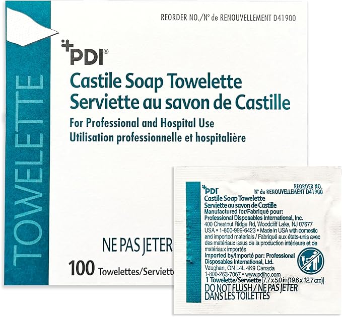 Castile Soap Towelettes, Face and Hand Cleansing, 100 Individually Wrapped Wipes Per Box