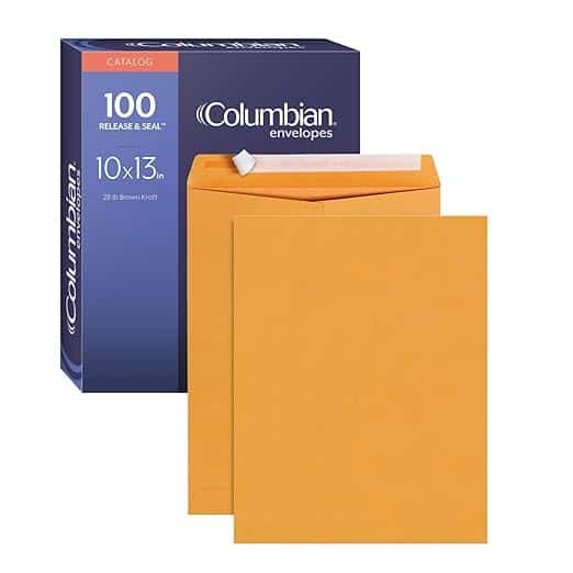 10 x 13 Catalog Envelopes with Self Seal Closure, 28 lb Brown Kraft, for Mailing Flat Letter Size Documents or Photos, 100 Per Box