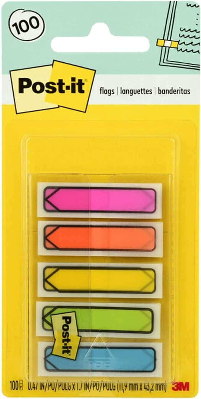 Post-it Arrow Flags, Assorted Bright Colors, .47 in Wide, 100/On-the-Go Dispenser