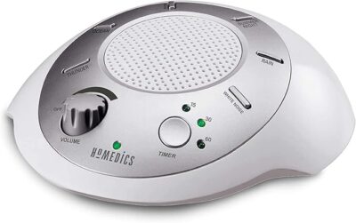 Homedics SoundSleep White Noise Sound Machine, Silver, Small Travel Sound Machine with 6 Relaxing Nature Sounds
