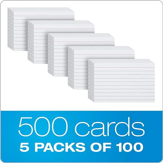 Index Cards, Ruled on Front, Blank on Back, White, 3×5 Index Cards, 5 Packs of 100 Shrink Wrapped Cards – Pack of 500