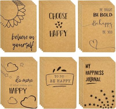 Paper Junkie 24 Pack Journals for Kids – Let’s Be Happy Journals Bulk – Kraft Paper Notebooks School Supplies (80 Lined Page, 4 x 5.75 In)
