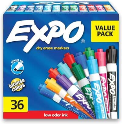 EXPO Low Odor Dry Erase Markers, Chisel Tip, Assorted Fashion Colors, 36 Count