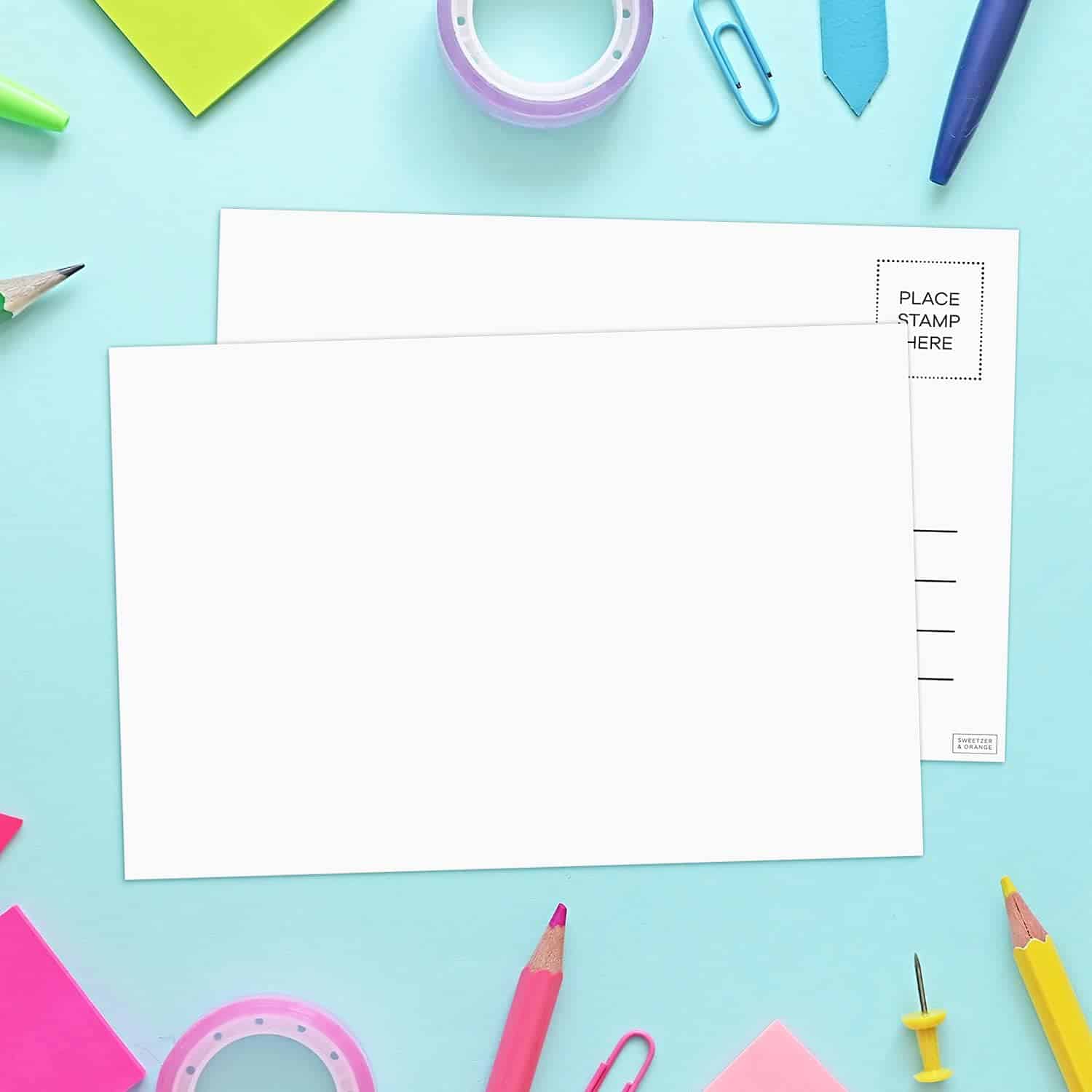 Sweetzer & Orange Blank Postcards for Mailing. 60 White 4×6, Mailable Postcards Set. Make Your Own Printable Postcards. 300gsm Paper Cardstock, Bulk Pack.