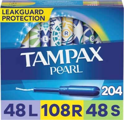 Tampax Pearl Tampons Multipack, Light/Regular/Super Absorbency, With Leakguard Braid, Unscented, 34 Count x 6 Packs (204 Count total)