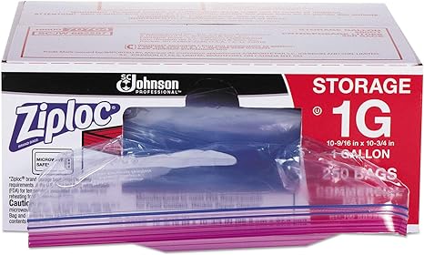 Ziploc 682257 Double Zipper Bags, Plastic, 1gal, 1.75mil, Clear w/Write-On Panel, 250/Box